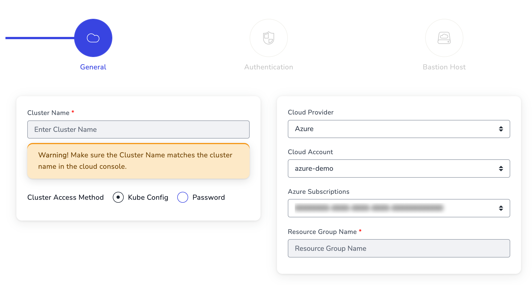 <figure><img src="https://234395929-files.gitbook.io/~/files/v0/b/gitbook-x-prod.appspot.com/o/spaces%2F5QxXxCob5M5VXQJTryRc%2Fuploads%2FdaVEz4heTemMf08hbHlx%2Fregister-cluster-bastion.png?alt=media&#x26;token=b4bb4be2-375b-43c8-8ce7-d77fff28f23a" alt=""><figcaption><p>Provide the Bastion Host Connection Details</p></figcaption></figure>